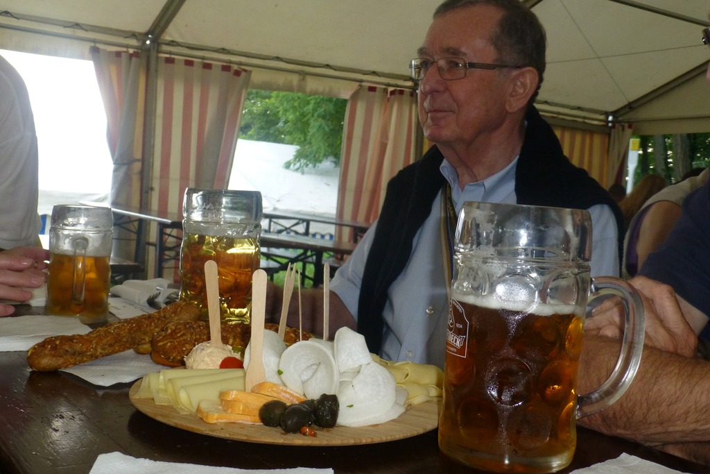 Unser fürsorglicher Gastgeber. Die Brotzeit - nach Bratwürsten und Steaks - war nicht für ihn, sondern für alle am Tisch bestimmt.